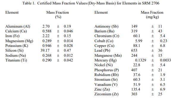 SRM 2706 是一種天然農(nóng)業(yè)土壤,與含有目標(biāo)成分的廢棄土壤材料混合。一個 SRM 2706 單元由 50 克干燥的粉狀土壤組成。