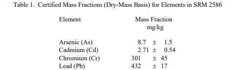 NIST SRM 2586涂料中含鉛土壤中的微量元素(標(biāo)準(zhǔn)品)