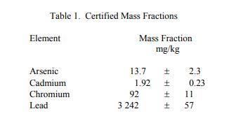 表 1 中提供了四種環(huán)境重要元素的認證值。NIST 認證值是 NIST 對其準確性有最高置信度的值,因為所有已知或可疑的偏差來源都已調查或說明由 NIST 提供。
